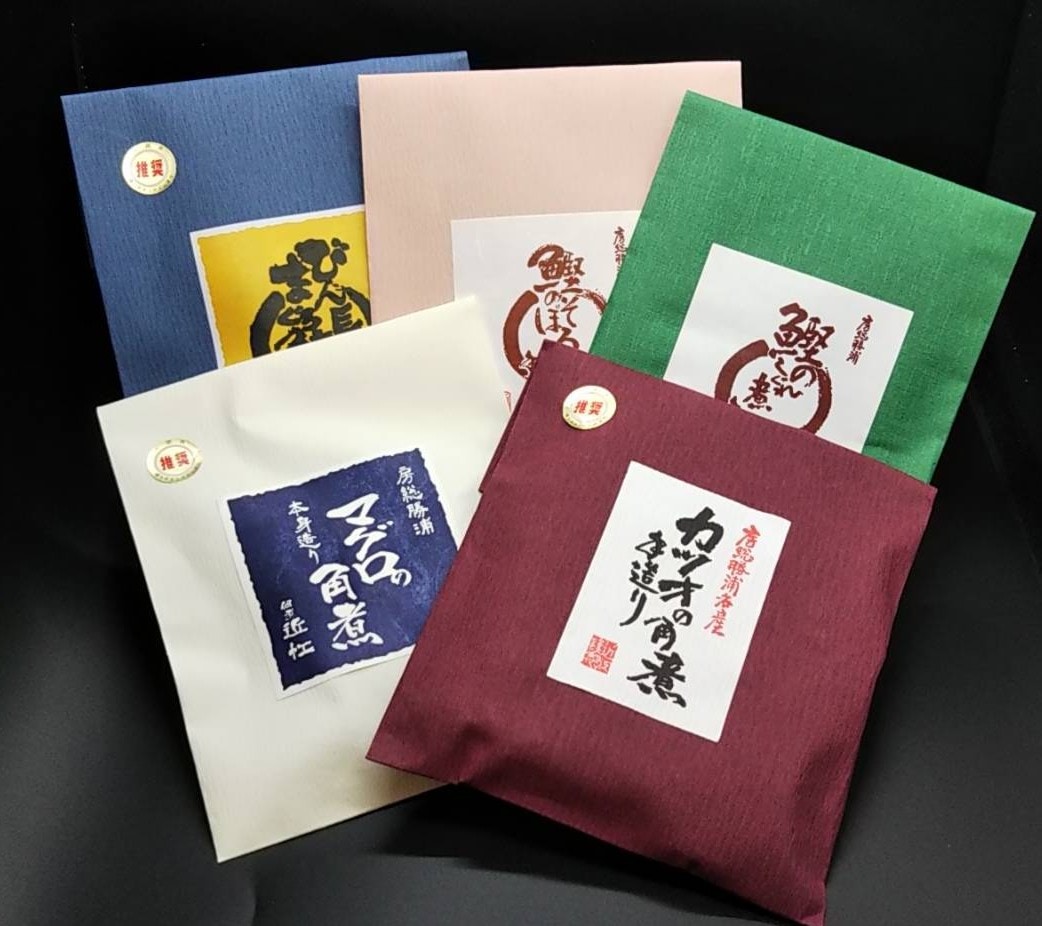 カツオの角煮・マグロの角煮・びん長まぐろの角煮にカツオのしぐれ煮とそぼろ煮をセットにしました。